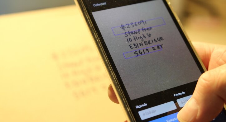We have two products. First, our LabelFree product: the handwritten code is written on a parcel and AI validated via the camera function on the smartphone; then the customer ships the parcel with confidence to the post or carrier, who receives it and puts it through their network in the usual way, either by putting a barcoded label on the parcel or putting it through their scanning equipment and validating the Stamp Free code with our API technology.