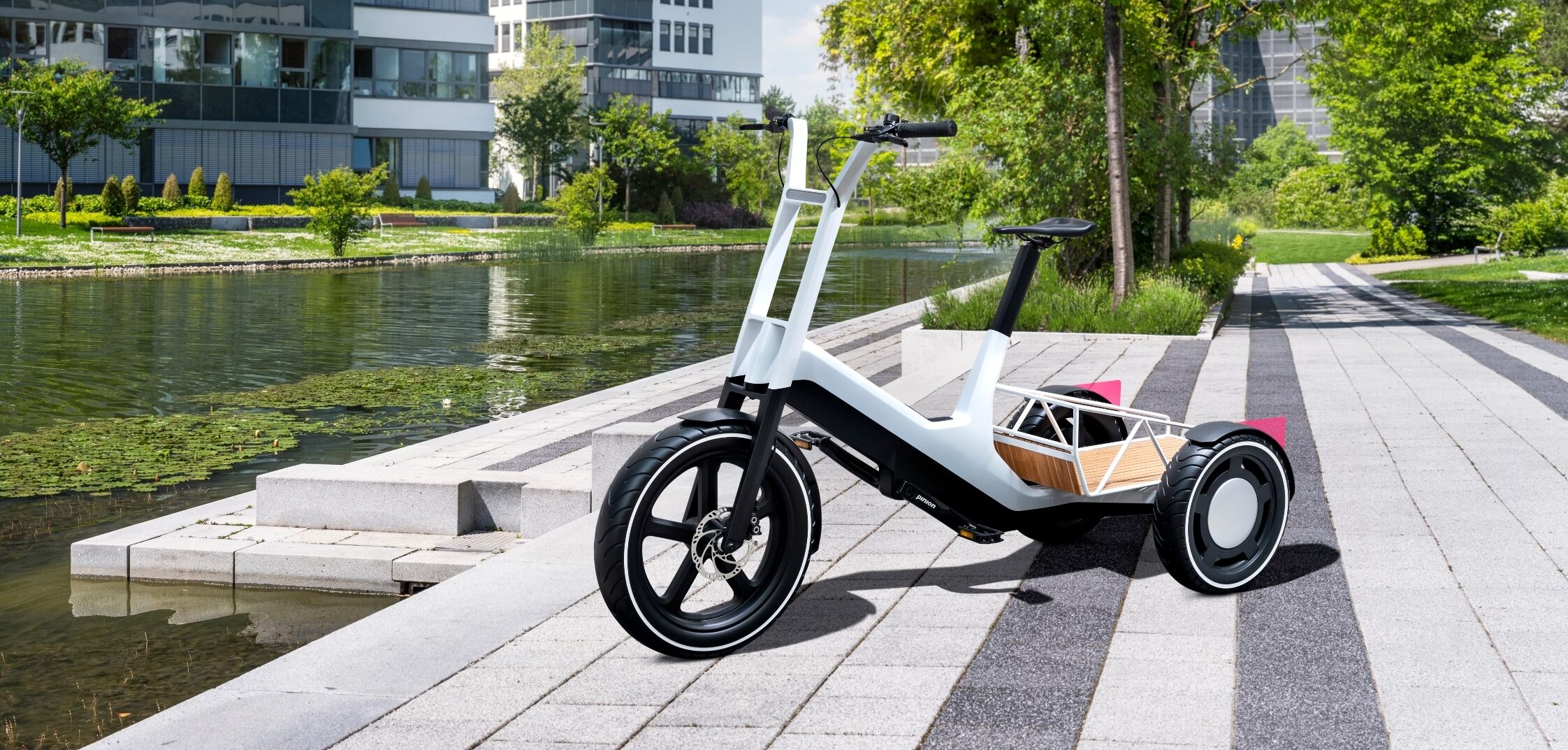 The automotive manufacturer notes that although a wide range of cargo bikes are now available, they tend to be wider and longer than normal bicycles due to the requirements for transporting loads. In conjunction with the resulting additional weight of the frame and payload, this leads to varying degrees of restrictions compared with normal bicycles, particularly with regard to agility and handling.