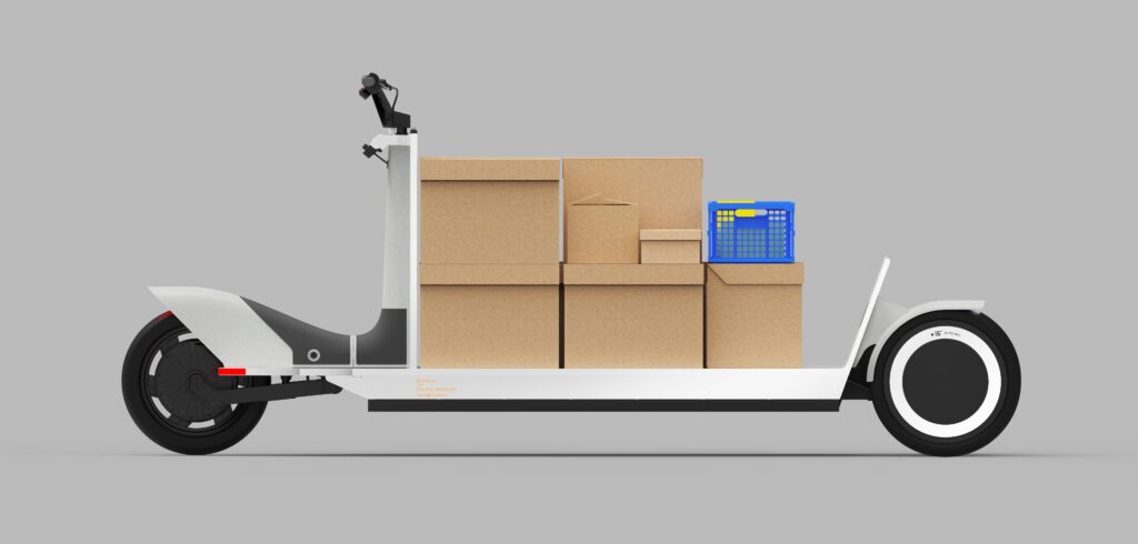 The group behind the project say they saw a need to reimagine last-mile deliveries and how goods are transported within cities, as the world looks to radically reduce reliance on combustion engines. To this end, designer Konstantin Grcic has devised the vehicle to be a dynamic, three-wheeled urban ‘sled’. Its developers say it defines a new vehicle category: compact and mobile enough for most bike lanes but big enough to handle a 275kg payload.
