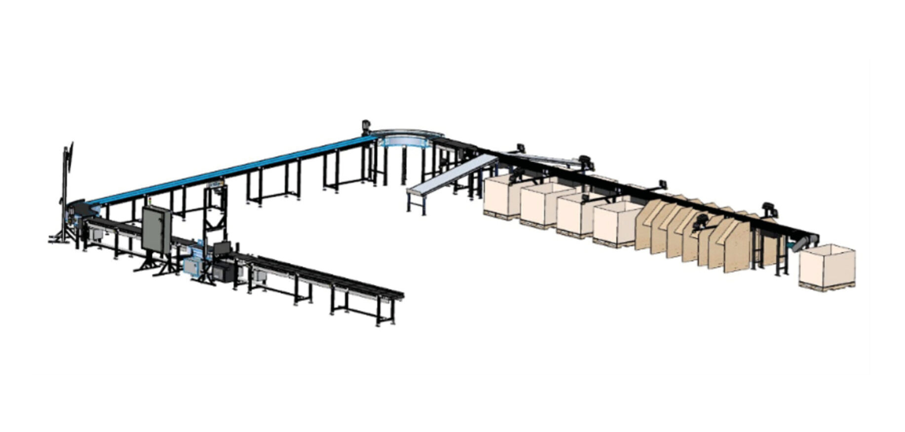 Phase two of the project, scheduled for delivery in October 2022, will add automatic sorting with 20 sorting outlets with piece-to-container tracking. It will also reconfigure the system into a U-shape for better facility space use. The sorting system will have 10 outlets for gaylords or gravity roller conveyors and 10 bag holding outlets for sorting into postal bags. PPSS outlet control panels and container bundle label printers will also be included with the sorting system.