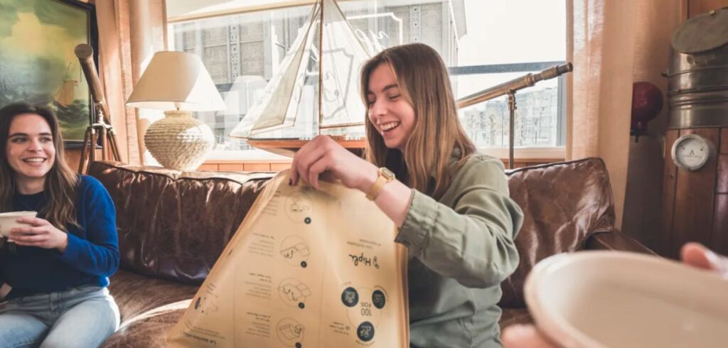 A lifecycle analysis by Hipli shows that using reusable bags reduces the carbon footprint of every shipment by 83% compared to cardboard packaging. This packaging is water-tight and tear-proof. After delivery, the empty bags can be put into a bpost pickup point (including red mailboxes, post offices, parcel points and post points) for cleaning and reuse in the e-commerce circuit. When folded into the form of an envelope, these reusable bags can be returned free of charge.