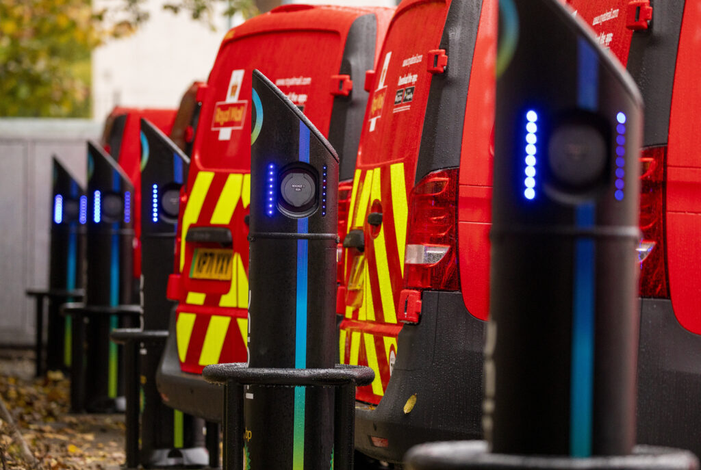 Royal Mail has worked with BP Pulse in Glasgow to complete infrastructure works and install eight 7kW electric charging points. The energy to power the vehicles is from 100% renewable hydroelectric, solar and wind sources.