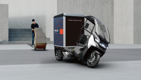 Michael Johnson, co-founder and chief revenue officer (CRO) at Zoomo, presents the company’s light electric…